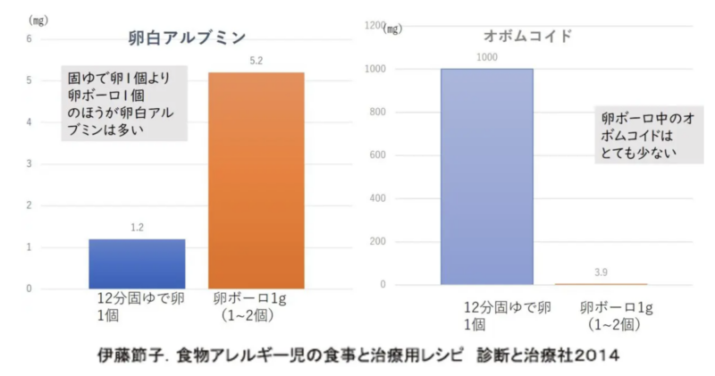 固ゆで卵1個より卵ボーロ1個のほうが卵白アレルギー物質は約4〜5倍も多いとのデータがあるのです。